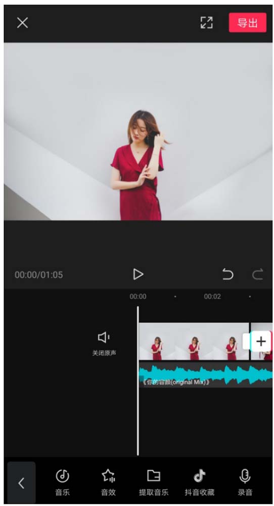 01在剪映App 中导入视频素材,并添加相应的卡点背景音乐。